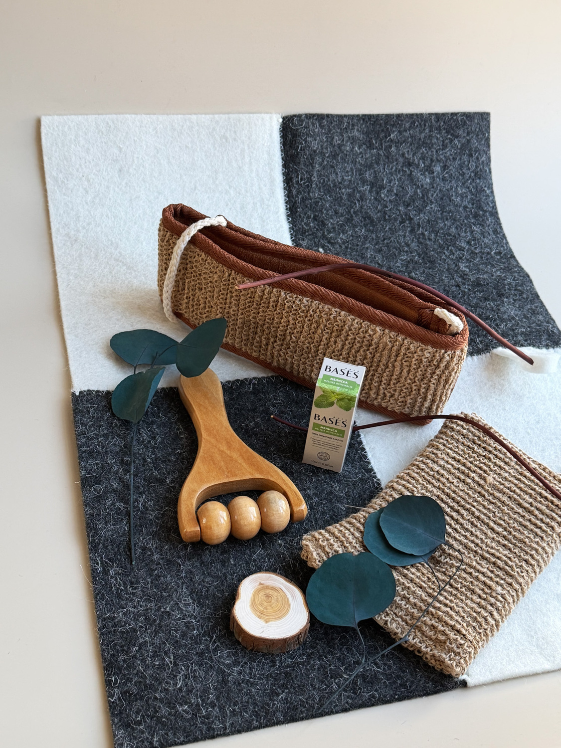 Внутри: мочалка-пояс, натуральная джут-текстиль